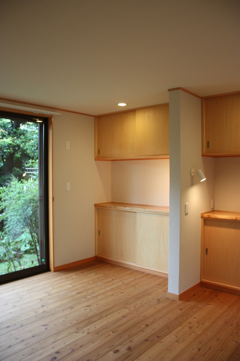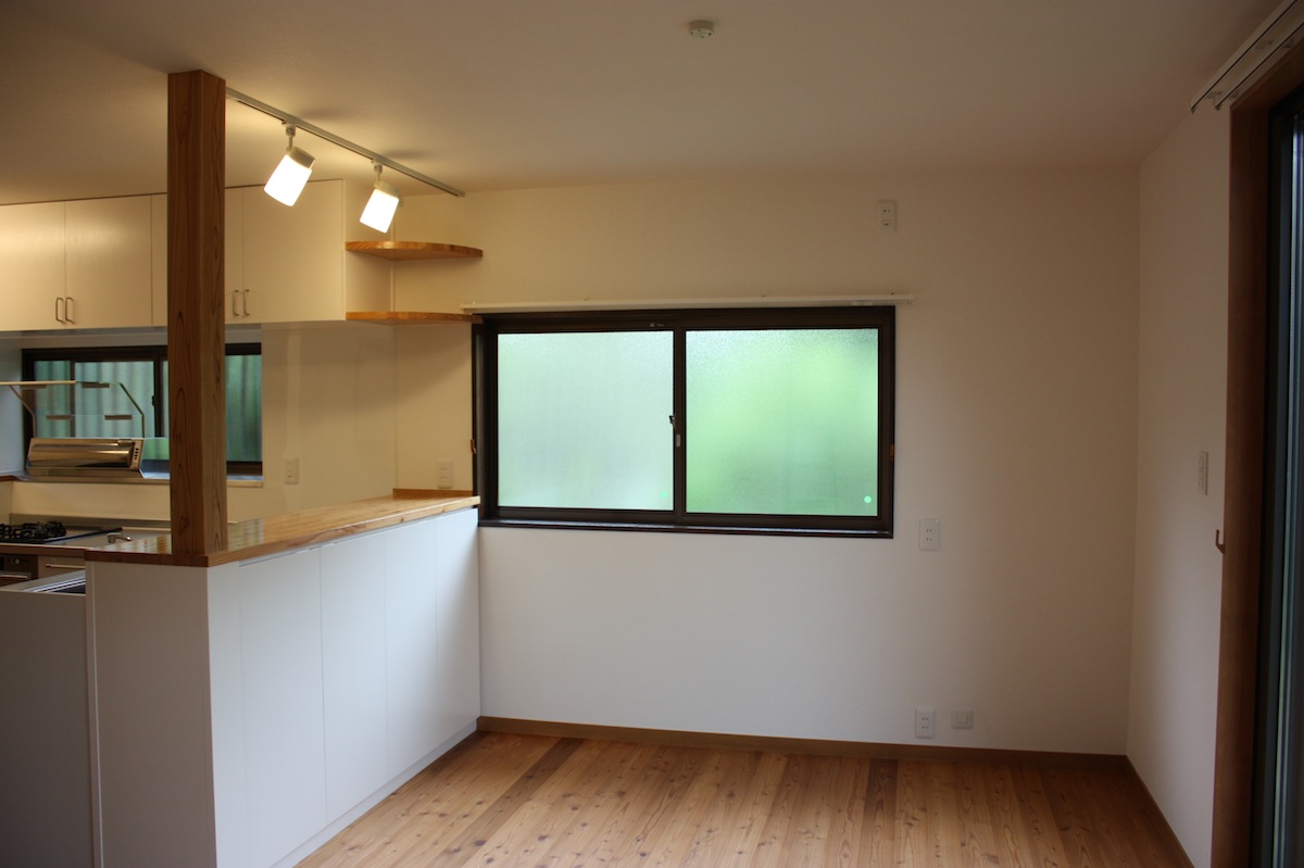 古い木造2階建住宅にお住まいだった初老の御夫妻のための、生活改善を主な目的としたリノベーション工事です。1階のLDK・水回り・和室の間取り改善と、断熱化(ペアガラス/断熱材)の改善、耐震性の改善、床暖房敷設工事、バリアフリー工事など。将来的には全て1階だけで生活ができるように配慮した。